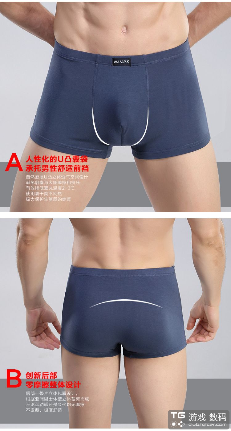精选再生纤维,高档面料,能够更好的吸湿排汗,双车线工艺,阵脚密集,四针六线的,耐穿!u凸立体透气空间设计,承托男性前档,穿着舒适!