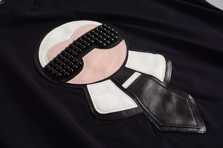 63颗纯手工镶嵌技术(非粘贴钉)Fendi 芬迪尾单拼接羊皮老佛爷t恤
