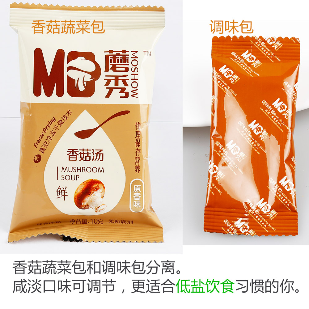 2、蔬菜包和调味包是分离的,咸淡可调节。一般的蛋花汤之类的产品,大都咸得一比,除非放很多水,不然没法下口。