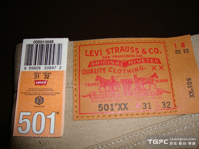 19. Levi's 501XX Shrink-to-fit缩水款的裤子是12.5oz未脱浆的料子
