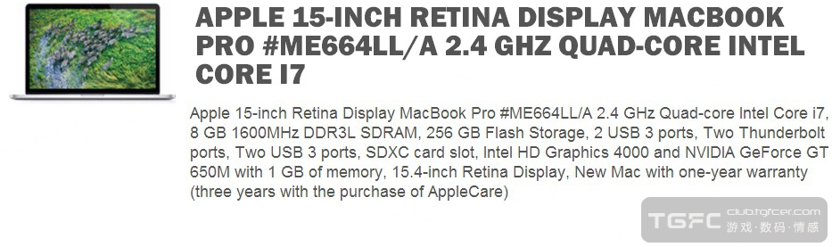 Apple 15.4" MacBook Pro (with Retina display) quad-core Intel core i7 2.7GHz,Turbo Boost up to 3.8GHZ