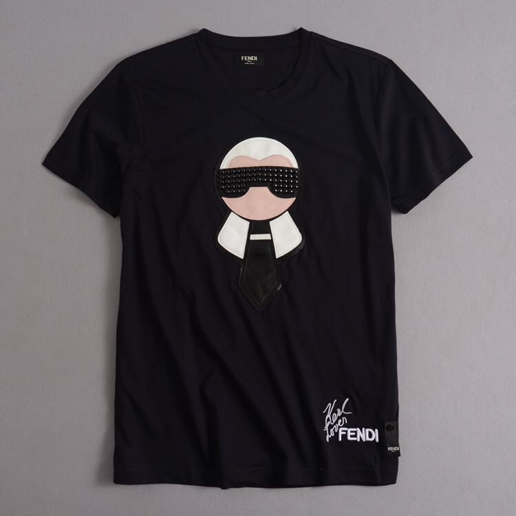 自留一件!Fendi 芬迪尾单正品,奢饰品丝光棉老佛爷小羊皮T恤,三标齐全,高档次高档次货!穿上档次直接跳10级!63颗纯手工镶嵌技术(非粘贴钉)绝对牛逼,怎么操都不会掉、进口绵羊皮拼接,真正的真羊皮哦,真心棒,非常高档,左下摆刺绣芬迪字母品牌、一针一线都是那么完美,专柜4000人民币,说句老实话,还是尾单实在实惠!128到大家手里,一折不到,S-XL码 正常码数,深宝蓝色,夏季不吸热、
