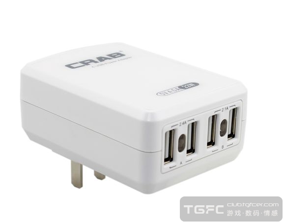 CRAB酷博4口USB充电器5V2A