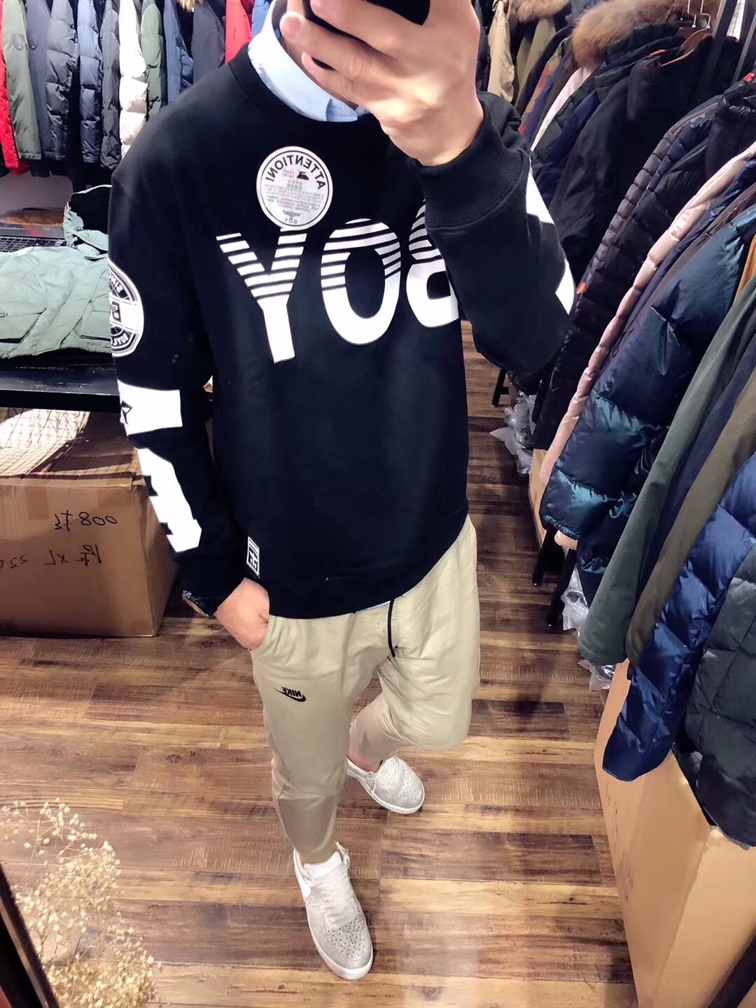 品名:31boy卫衣。155包邮 。编号736090090。17款boy情侣毛圈卫衣,S码女生穿。青岛胶州产,两侧袖子印花,上身超级帅气。后肩部分通肩拉条,大工厂的货确实不一般。花最少的买最好的的品质,这款价格对应品质,性价比无敌。 老宋穿M码合适!!!