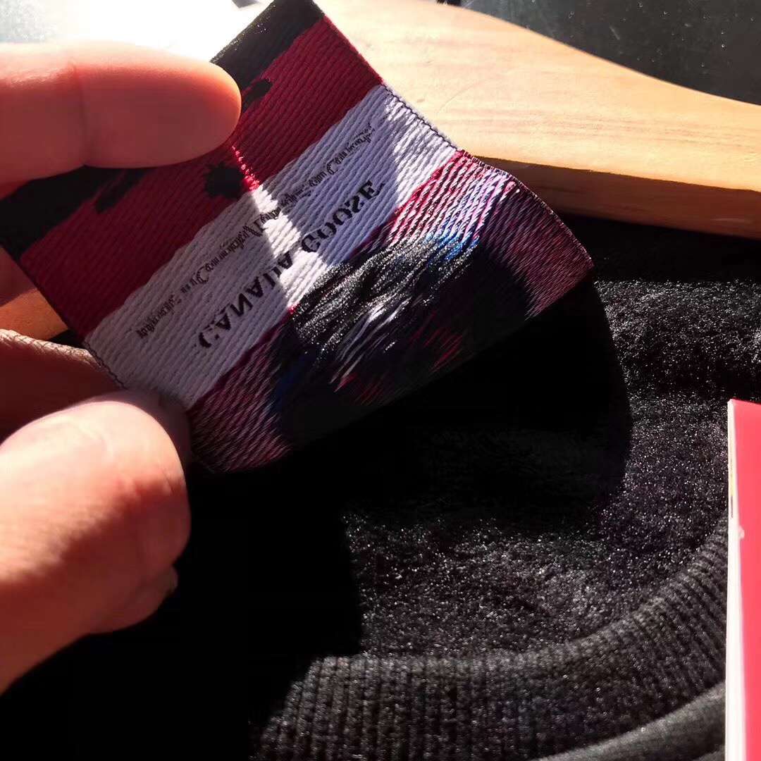 Canada Goose 加拿大鹅!!!品名:大鹅加绒卫衣…178包邮 编号325125452 内里不倒绒!主打经典款!修身设计!全部都是贸易公司货!穿上就不想脱下的舒适体验!当季的最新款 !保暖又有型!洗标主标全套齐全!东西一定是保真的!面料是全棉弹力布料相当厚实!就是这个季节该有的厚度!看看这个面料 看看这个厚度跟工艺什么叫公司货!老宋自留M码 尺码表最后一张… 黑色尺码全,灰色只有XL,XXL,