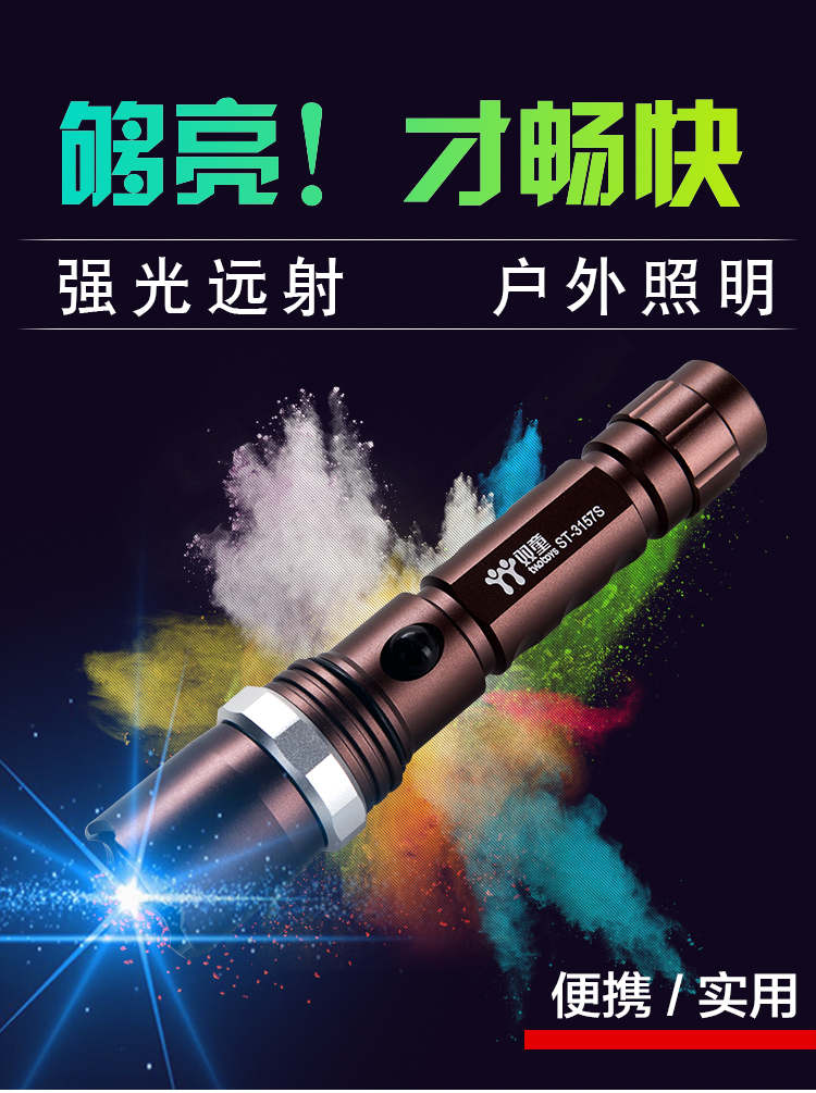 双童手电超强远射 300米 可防身 续航10h 灯珠是5W的LED 铝合金的材质