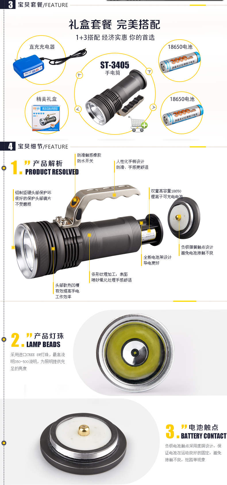 49.9的带个提手 带二个18650 灯珠是8W的LED 野营 钓鱼还是不错的